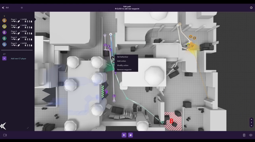 CSGO Board est une excellente alternative à Katanapp. Il permet de créer des plans d’attaque précis pour chaque coéquipier, en leur assignant des positions, puis armes à utiliser pour chaque séquence de jeu.